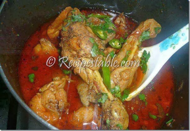 Then add to it chicken, coriander powder and salt and cook on low flame till the chicken becomes tender.